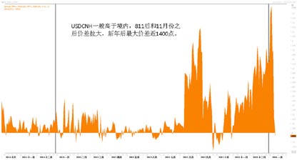 近期市场传言有银行受到暂停购售业务的处罚,表明监管力度有增无减,在汇率改革的关键时期,预计监管力度的高压将持续存在。高压政策的持续可能会弱化离岸CNH市场的作用,近期离岸市场已出现持续的汇差增大,且利率高企,对离岸市场的发展产生负面影响。
