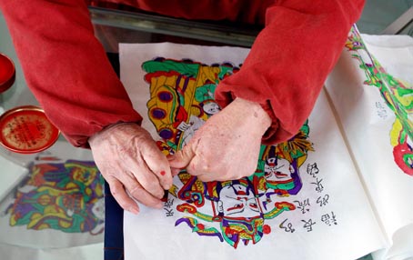 朱仙镇的木版年画在2002年被列入“中国民间文化遗产抢救工程”,不久又被列入国家首批非文化遗产名录。如今,能全面掌握年画雕版、印刷、调色的老艺人已寥寥无几,尹师傅是目前被河南省委宣传部、省文联命名的朱仙镇木版年画唯一的传承人。