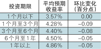 收益表现:银行理财产品收益继续下跌,1-3个月期跌幅最大