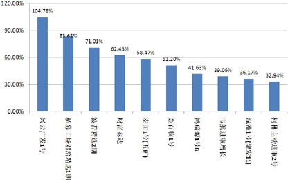 本月已公布期限的286款信托产品中,1-2(含)年期限段产品发行了245款,占比为85.66%,环比下降5.81个百分点;2-3(含)年期限段产品发行了29款,占比为10.14%,环比上升3.94个百分点;3年以上期限段产品发行了12款,占比为4.20%,环比上升1.87个百分点。从资金运用领域看,基础设施领域产品发行了182款,占比为37.53%,环比上升6.56个百分点;工商企业领域产品发行了66款,占比为13.61%,环比下降3.65个百分点;金融领域产品发行了83款,占比为17.11%,环比上升4.42个百分点;房地产领域产品发行了45款,占比为9.28%,环比下降3.92个百分点;证券投资领域产品发行了10款,占比为2.06%,环比下降1.49个百分点;其他领域产品发行了99款,占比为20.41%,环比下降0.91个百分点。金融领域产品连续两个月市场占比提升,或是因为年末因素。