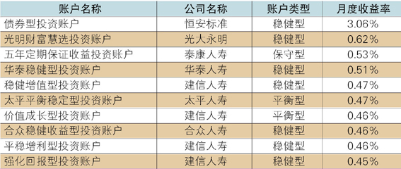 投连险账户业绩表现:月度平均收益率为-9.84%,恒安标准债券型投资账户表现最佳