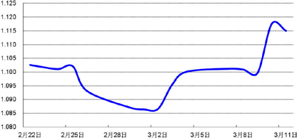 上周,欧洲央行货币宽松力度超出市场预期,但欧洲央行行长德拉吉暗示没有进一步降息的必要,带动欧元先跌后涨,美元指数承压。美元对人民币中间价及即期市场成交价均触及年内低位,周五,美元对人民币即期价格收于6.4985,较前一周下跌0.36%。