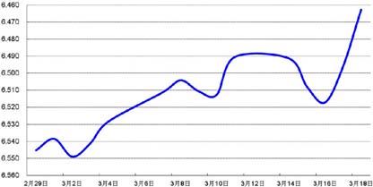 上周,美联储货币政策会议决定维持利率不变,并全线下调未来利率预测,带动美元指数快速下跌,并刷新近5个月低位,人民币对美元价格顺势大涨,最高触及6.4559的3个月新高,周五收盘于6.4727,当周累计上涨0.65%。