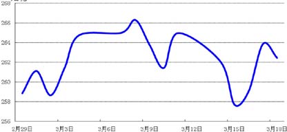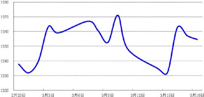 上周初,因投资者获利了结,国际金价承压下跌;但美联储货币政策会议上的鸽派言论打压美元,拉动国际金价回涨,周五收盘于1254.59美元/盎司,较前一周小幅上涨0.52%。