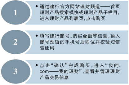 “理财频道”精选各类理财产品,并提供各类理财辅助工具,支持建行账户在线快速购买,用户无须登录网银即可支付。通过产品搜索模块,用户可快速定位待购买产品,而简化的操作流程和账号支付支持,则让用户购买理财产品更加高效、便捷,减少了用户办理时间和操作复杂性。