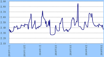 货币市场:上周央行公开市场转为小幅净投放,周初资金面曾一度因缴税压力影响而趋紧,随后伴随央行加强货币投放力度,流动性很快恢复平稳。7天期品种收益率较前一周下行8个基点至2.37%。