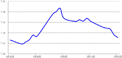 上周,伴随美联储4月议息会议声明公布,6月加息预期升温,美元指数强势上涨,人民币随之走贬。周五,即期市场人民币对美元收报6.5433,较前一周贬值0.35%。