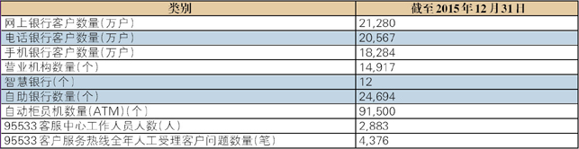 董事长王洪章表示:2015年,是中国建设银行致力于加快向“综合性、多功能、集约化、创新型、智慧型”战略方向转型发展的关键一年,也是成效卓著的一年。我们在复杂多变的经济环境中和不断加剧的市场竞争中,时刻保持清醒的头脑,洞察商机,把握机遇,进一步增强服务国家建设能力、防范金融风险能力和参与国际竞争能力,在促进经济、环境和社会可持续发展方面体现了大型银行的责任担当。