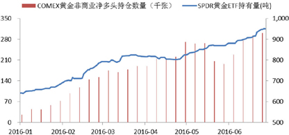 图5 SPDR黄金ETF和CFTC黄金非商业净多头持仓