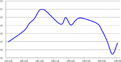 上周初,受美联储主席耶伦在杰克逊霍尔央行年会上偏鹰派讲话的影响,美元上涨,人民币对美元价格承压,并触及近一个月低位,随后,人民币对美元价格处于低位震荡,周五收于6.68,当周微跌0.18%。