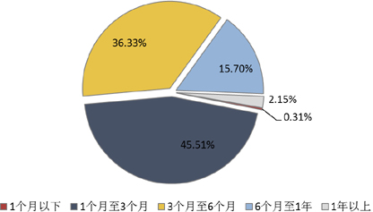 公布期限的238款产品中,1-2(含)年期限段产品发行了174款,占比为73.11%,环比下降2.32个百分点;2-3(含)年期限段产品发行了35款,占比为14.71%,环比下降1.67个百分点;3年以上期限段产品发行了29款,占比为12.18%,环比上升4.00个百分点。