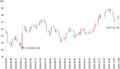 有人说,美国和英国这哥俩是在比赛,看谁更会自残,英国显然已经以公投退欧领先了一步,美国这次自然也不甘示弱。其实在美国的政治制度下,不管是希拉里还是特朗普当选,其个人主观意志对政策的影响有限,背后起决定作用的还是政党的立场。市场现在的恐慌主要是来自于不确定性,但不确定性并不一定导致灾难性的后果。金融市场的震荡更多地是在利用事件的变化来宣泄情绪。我们判断,市场对特朗普的当选有些过度反应,且机构投资者趁机建仓或获利了结,市场此后会有回调的可能。从大选结果公布的次日(美国当地时间的9日)市场的收盘情况来看,美元指数不仅收复了失地,甚至尾盘还收涨0.81%;黄金则回吐60美元涨幅重回1280下方美元/盎司;美国三大股指全部收涨。