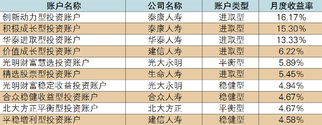 表2 2016年度投连险投资账户收益表现TOP10