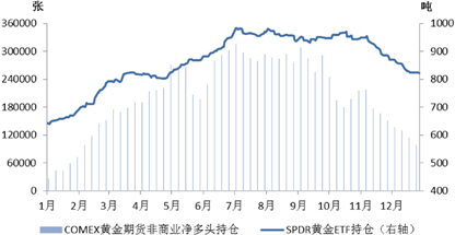 图6 SPDR黄金ETF和COMEX黄金非商业净多头持仓
