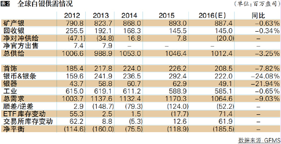 2016年,白银工业需求微降,电子电器、光伏等主要工业需求基本保持平稳。