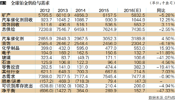 - 铂金:供需由过剩转为缺口,基本面改善(表3)
