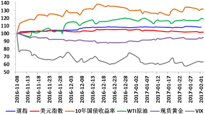 美国第45任总统特朗普1月20日正式就职后,移民、税收、反恐、贸易、医保、金融监管和基建等多方面新政快速落地,施政效率和执行力可见一斑,由此预计市场预期的“特朗普行情”可能短期内并不会削弱。观察特朗普已有言行,其成为以美国内政为中心总统的概率很高,相应美国确实存在着丧失战略性视角的危险,这种变化的不确定性已经给未来金融市场乃至全球经济埋下了最大的风险。(图1)