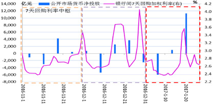 度过春节时点后,随着资金供需关系的改善,资金利率通常呈现下行走势,因此2月资金面应当会较春节前缓解。但2月资金面面临的主要风险因素是央行前期通过公开市场投放的巨额逆回购到期,加之TLF操作是否续作尚存不确定性。我们认为,当前央行主要思路仍然是在保证流动性总量适度充足的前提下提高资金成本,去杠杆和缩小中美利差抑制资本外流都有考虑,节后央行大概率不会完全续作此前到期资金,但会以MLF续作过渡。而且,随着节后现金回流,供需关系改善,多余的流动性央行可能会回笼,因此最终2月份资金利率中枢可能会下降,但降幅可能较为有限。
