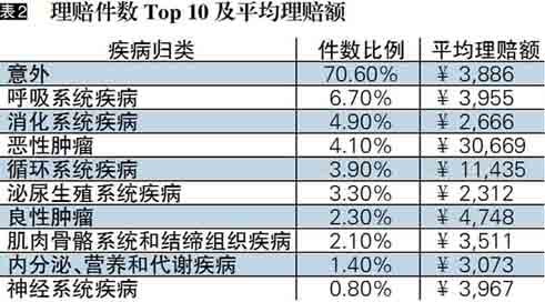 数据显示,意外发生数量比疾病多,但是疾病的理赔金额,即疾病所需花费高于意外。