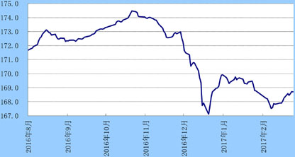 上周,美元指数先涨后跌,周初,因投资者对法国大选情况忧虑重燃,避险情绪拉升美元;随后,美联储公布的1月货币政策会议纪要偏“鸽派”,美元指数承压下跌,周五收盘于101.11,当周略微升值0.22%。美元兑人民币即期市场成交价在【6.86,6.8870】间窄幅区间波动,周五收盘于6.8718,较前一周小幅上涨0.01%。