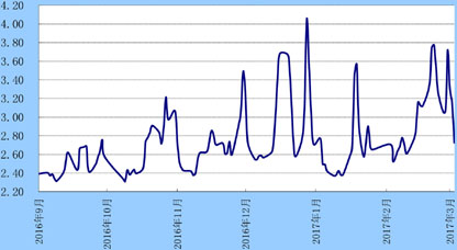 货币市场:受月末因素影响,上周二资金利率虽暂时大幅跳升,但资金面整体较为缓和,央行公开市场依旧净回笼操作,截至周五,7天回购利率较前一周下行51BP至2.73%。