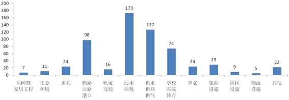 图1 国家发展改革委第三批PPP项目行业分布情况(项目个数)