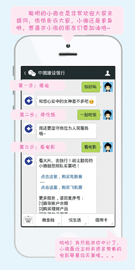 小微虽然是个学霸,可以快速解决业务问题,但她并不高冷,可以时时陪在身边谈心聊天。通过对用户会话习惯、会话内容的分析提炼,建设银行建立了智能聊天库,涵盖交互场景近3万个,可连续对话超过10轮。从衣食住行,到娱乐八卦,甚至时下流行的《三生三世十里桃花》,小微都能聊上几句。俏皮可爱的形象,幽默风趣的语言风格,会卖萌的小微圈粉无数。