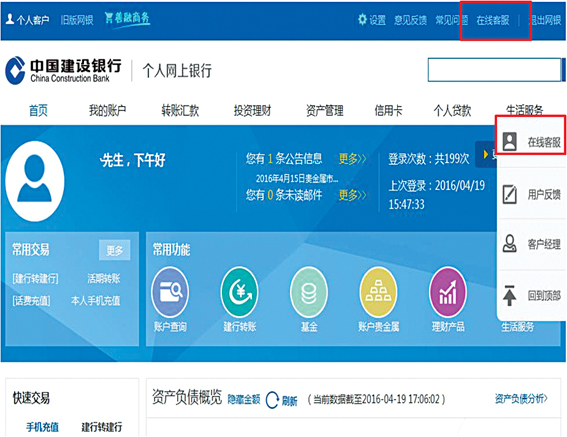当您在家里或办公室遇到建行业务问题时,您可以点击建行互联网站或者个人网银右上角的“在线客服”,选择您需要咨询的业务类型之后,再点击“在线对话”向小微求助。如果小微没能解决您的问题,您也可以选择“人工客服”,由小微的老师解答您的问题。