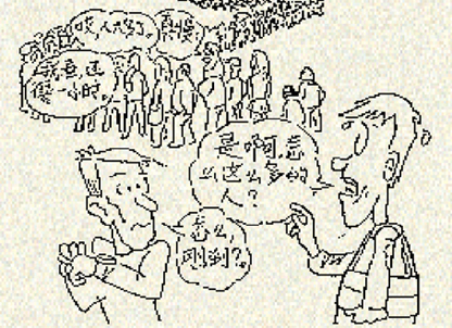 尝试了网上购票没成功,小明就起了个大早到窗口排队买票。还以为自己来的早,却发现售票窗口前已经排起了长长的队伍,随着人越来越多,队伍很快就望不到头了。