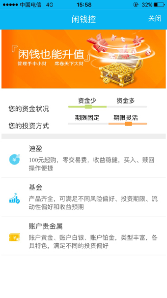 新版手机银行提供全面的投资理财服务,产品介绍信息更加详细,方便用户快速了解,除提供基金交易、债券交易、贵金属交易、理财产品、外汇买卖、代理保险、投资订单、账户商品、黄金积存、个人结售汇等常用产品交易外,新增账户外汇、专户理财、代理信托功能,提供“闲钱控”、“养老规划”、“住房规划”、“子女教育规划”等理财场景,帮助你提高理财能力,优化目标资产配置。