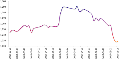 商品市场:因美国就业数据向好,市场对美联储加息预期升温,加之欧元区政治风险减弱,避险需求下降,国际金价大幅下跌,周五收盘于1227.59美元/盎司,较前一周下跌。