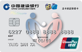 家庭挚爱卡 2016年4月,建设银行秉承社会公序良俗,挚爱存心,龙卡寄情,推出以家庭为主题的信用卡——龙卡家庭挚爱信用卡,提供涵盖健康医疗、衣食住行、子女教育留学等众多生活场景的全方位专属服务。