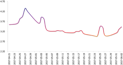 货币市场:上周因央行公开市场净投放少,本周逆回购和MLF到期量大,而央行尚未开展MLF续作和28天逆回购,加上6月资金需求较大,市场对后续流动性预期不乐观,资金利率较快上行。截至上周五,7天质押式回购加权利率较前一周六大幅上行45BP至3.44%。