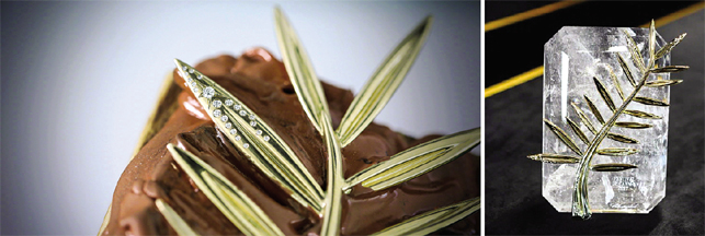为了纪念戛纳电影节创立70周年,与Chopard合作20周年。本届的奖杯推出了镶钻特别版。由Chopard设计制作,采用118克“公平采矿”(Fairmined)认证的黄金打造。金棕榈下方衬有祖母绿型切割的水晶基座。叶片上共镶嵌167颗钻石,总重0.694克拉。奖杯价值超过2万欧元。由7名工匠花费共计40小时制作完成。