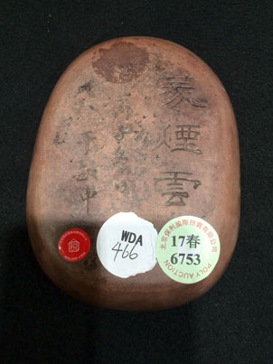 该砚为长圆形色黄,大小在十数厘米,砚背有“篆煙雲丙子冬日”字样,落款为“于敏中”。于敏中康熙五十三年(1714)生于江苏金坛,自明代以来有二十五人考中进士,出过“三世中丞”和“兄弟状元”。于敏中十五岁中举,乾隆二年(1737)受恩加恩科殿试,被乾隆钦点为状元,乾隆二十五年(1760),于敏中晋升为军机大臣并在上书房行走,辅助乾隆处理政务。有人说清中期,汉族官员中权势最大首推雍正朝的张廷玉,其次就是乾隆朝的于敏中了,当然像陈廷敬、刘统勋也较得宠信,但无法与于敏中相比。于敏中还是《四库全书》之总裁及《日下旧文考》之总纂,这两部书在中国历史上的价值看来不用我说了。把玩名人用砚乃人生之享受是也。文人以笔耕砚田写出惊天地泣鬼神之多彩华章,是古代文人努力实践并且追求的。