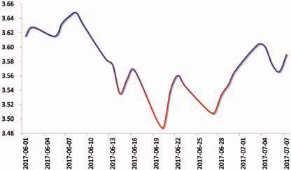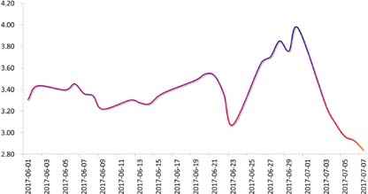离岸人民币市场:上周离岸人民币汇率基本在6.8附近小幅震荡,各期限掉期点也基本保持稳定,市场流动性充足。上周五公布的6月末外汇储备数据连续第五个月增加,剔除资产重估等因素的影响,交易带来的外汇储备损耗几乎为零。预期未来一段时间人民币汇率仍然在6.7至6.9的范围内震荡。