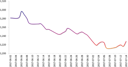 商品市场:上周,市场对于美联储年内再次加息的担忧减弱,黄金反弹,周五收盘于1228.55美元/盎司,较前一周上涨1.32%。