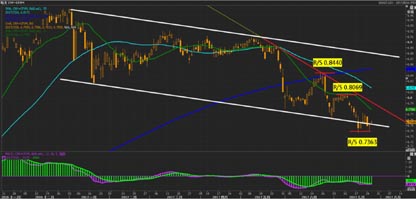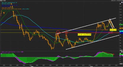 从国际环境来看,国际美元的持续走弱缓解人民币下行压力。今年3月以来美元指数急转直下,难转颓势,连续第五个月收出长阴线,并于近期创下今年的新低93.25。美联储7月议息会议基本确定9月份开始缩表行动,但对于疲弱通胀的担忧使得12月份加息的概率明显下降。对美元不利的是,欧洲央行、英国央行的态度明显转趋鹰派,加拿大央行已于近日加息,这使得美元的加息并非一枝独秀。雪上加霜的是,特朗普医改法案一再受挫,使得市场对特朗普税改方案的推进能力受到质疑,特朗普长子的电邮事件让“通俄门”危机继续发酵,使得美元愈发疲弱。从技术分析上来看,美元指数有望在200周均线位置92.20暂时企稳,如美元极度疲弱,可能要到200月均线位置89才能企稳。(图2、3)