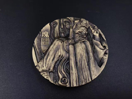 应当说,钟馗在中国是家喻户晓的神话人物,而自古以来民间以钟馗为题材的多种艺术载体早已深入人心,如文学钟馗、国画钟馗、玉雕钟馗、木雕钟馗等等,但钟馗以金属艺术章牌的形式出现还是第一次。