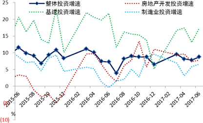 中国经济受益于全球经济的整体复苏,供给侧改革和价格上涨带来的工业利润改善与工业生产恢复,以及房地产去库存带来的房地产产业链复苏,上半年经济表现强劲,二季度GDP同比6.9%,持平于前值,高于市场预期;环比增速1.7%,较一季度的1.3%有所提升。二季度名义GDP增速11.1%,较一季度的11.8%小幅回落,但仍处于较高水平。从近期经济数据看,经济复苏态势继续向好,外贸、生产、投资、消费增速均有改善,但考虑到主要驱动因素仍为低库存和由此带来的利润改善,而企业补库存意愿能否持续仍需观察,加之年中业绩考核因素的干扰,尚需结合7-8月的经济数据,以进一步确认经济增长的中期趋势。
