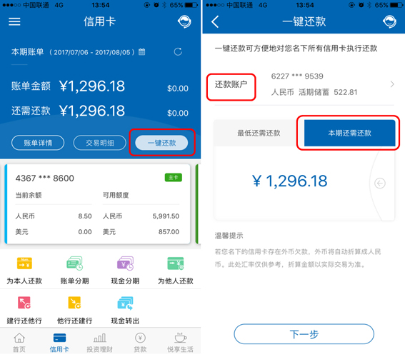 95533答:通过手机银行的信用卡一键还款功能,就能一次性归还您名下所有信用卡的欠款。具体流程为:登录我行手机银行,依次点击“信用卡-一键还款”,根据页面提示选择还款账户及还款方式后点击“下一步”即可。(客户服务中心)