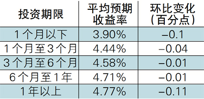 收益表现:市场资金面紧张态势得到缓解,银行理财市场收益率冲高回落