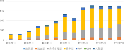 有消息称,中国银监会于7月份要求部分银行降低其理财产品的收益率,以控制风险,且此举主要针对表内理财,也就是保本型理财产品。与此同时,7月初中国人民银行发布的《中国金融稳定报告(2017)》称,应引导资产管理业务回归本源,有序打破刚性兑付。可见,理财业务回归“受人之托、代人理财”的本源已经迫在眉睫,一方面是为了降低过高的产品收益率而带来的银行负债端压力,另一方面是为了加快资产管理市场的转型,可以预见未来理财产品中非保本型和净值型的占比将有所提升。