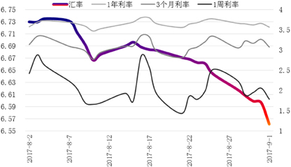 离岸人民币市场:离岸人民币继续气势如虹,上周走出了兑美元单边升值的态势。上周五收盘于6.5627,较前一周大幅升值约800个点。离岸人民币各期限掉期小幅走低,市场流动性充裕。