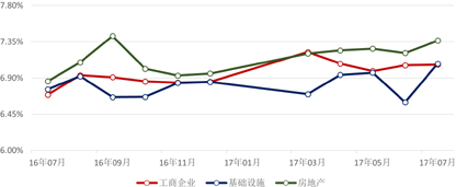 从收益方面来看,1-2(含)年期限段产品平均收益率为7.17%,环比上升4.31个基点,其中,工商企业领域平均收益率为7.21%,环比上升14.72个基点,基础设施领域平均收益率为7.06%,环比下降2.25个基点,房地产领域平均收益率为7.40%,环比上升3.45个基点;2-3(含)年期限段产品平均收益率为7.59%,环比上升22.95个基点,其中,工商企业领域平均收益率为7.73%,环比上升20.00个基点,基础设施领域平均收益率为7.49%,环比上升28.75个基点,房地产领域平均收益率为8.40%,环比上升90.00个基点;3年以上期限段产品平均收益率为7.00%,其中,基础设施领域平均收益率为7.00%。(图6)