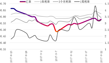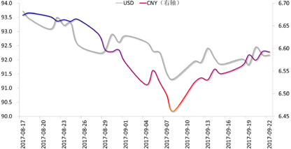 外汇市场:上周人民币兑美元震荡下跌:周四,美联储货币政策会议宣布从10月开始缩表,并暗示12月有加息可能,人民币兑美元即期市场成交价一度跌破6.6关口,创三周新低,周五收盘于6.5922,较前一周贬值0.73%。短期内人民币汇价或将继续宽幅震荡。