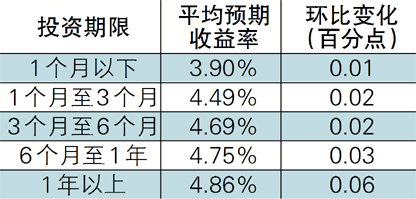 表1 2017年10月人民币银行理财产品平均预期收益率
