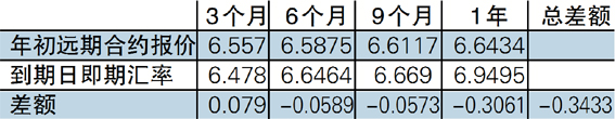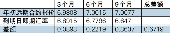 但假如企业继续坚持这种策略,在2017年初仍然与银行签署每个季度末到期的远期结汇合约,结果会如何呢?如下表所示: