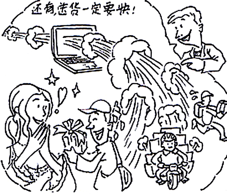 购物狂欢节终于来了,小明的网店也如预料的一般迎来了销售高峰,他的心里乐开了花。可没多久,店里就开始收到了各种投诉,让小明哭笑不得。但妻子却很淡定:食得咸鱼抵得渴啦,你不知道商机背后总有风险吗?