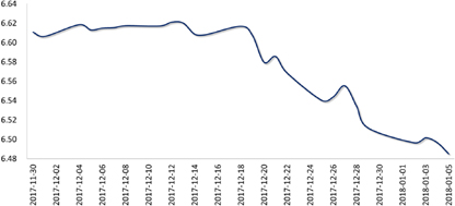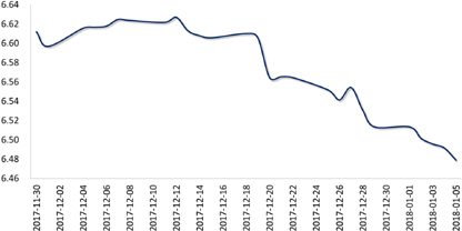 上周,美联储公布12月会议纪要,暗示可能因税改更快加息,提振美元,但随后美元再次回归颓势,跌破92关口。目前美元遇好难涨、逢空易跌,若无超预期利好因素,短期内恐难以摆脱疲弱背景。弱势美元,叠加市场结汇需求增加,推动人民币升破6.50关口,周五收于6.4851,较前一周升值0.41%。